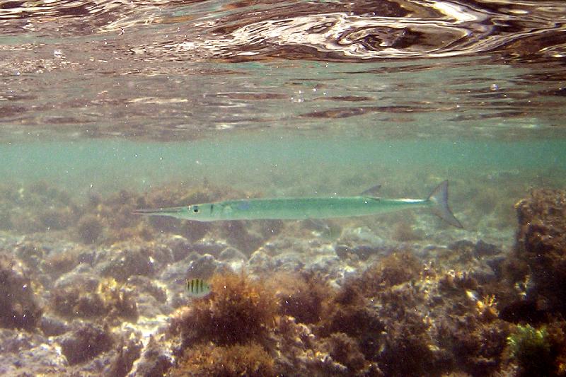 Up to 140 cm in length and primarily an ocean fish, the Needlefish is also found in estuaries and sometimes around the marinas in small groups from 2 to 6.