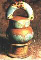 one of the vessels, a stirrup-handled pot with an intricately locking